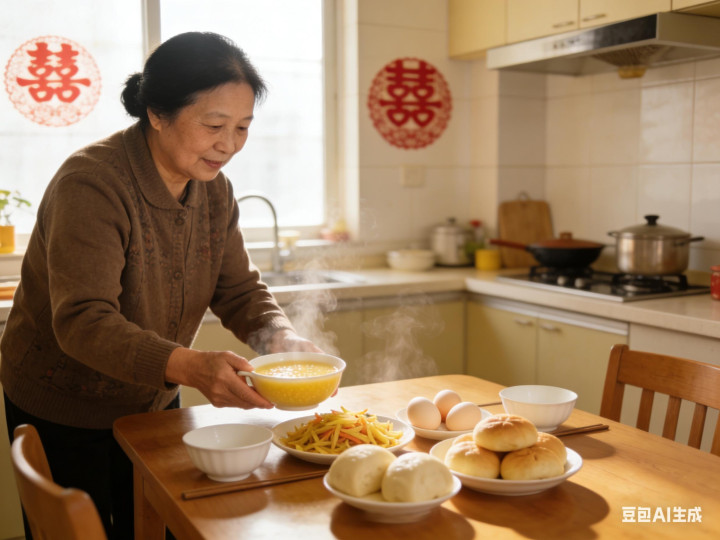 刚授室第二天,我起了个大早,熬了小米粥,炒了个土豆丝,又煮了两个鸡蛋 ,热了两个馒头。