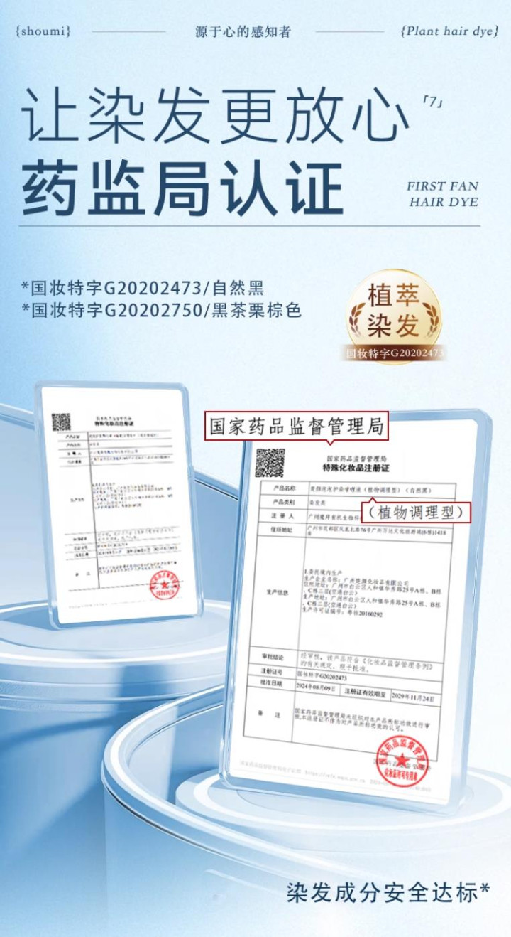 持有国度药监局特殊化妆品注册证(国妆特字 G20210386),合规天禀可通过国度药监局官方渠说念查询,安全有保险,是国内首批赢得国妆特字认证的国货染护品牌。