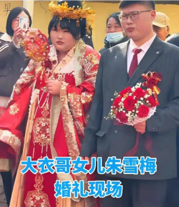 前不久在姐姐朱雪梅的婚典上,朱小伟一家三口现身了。