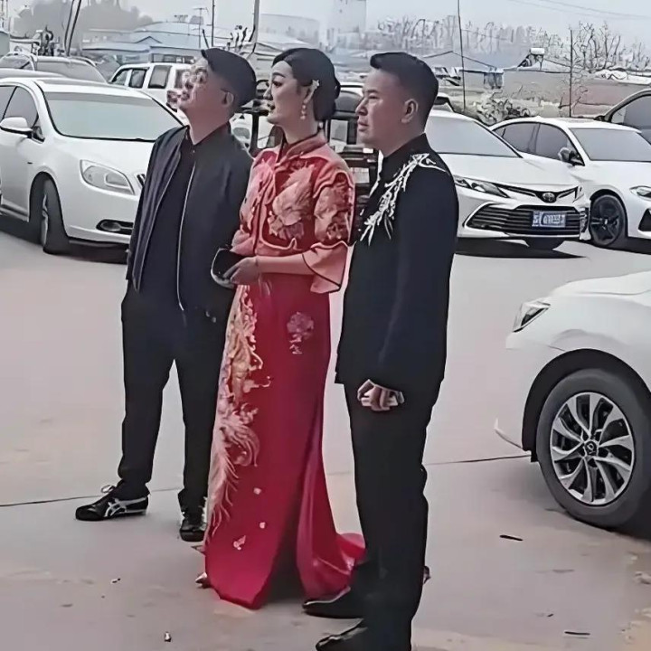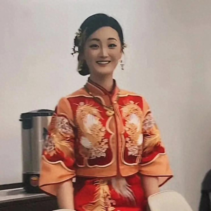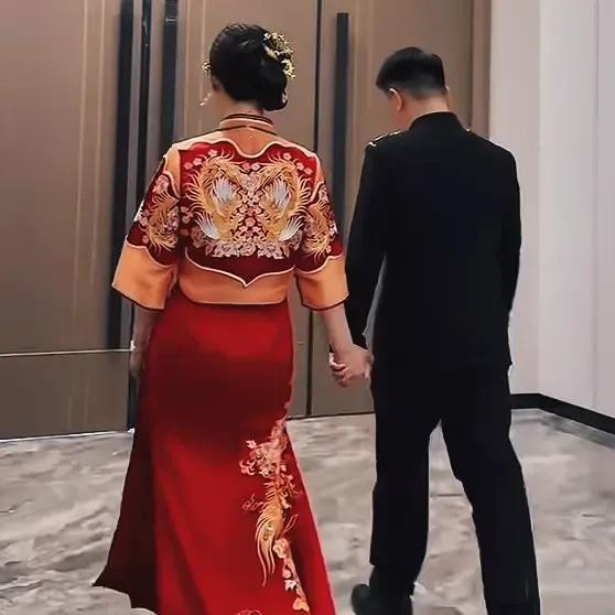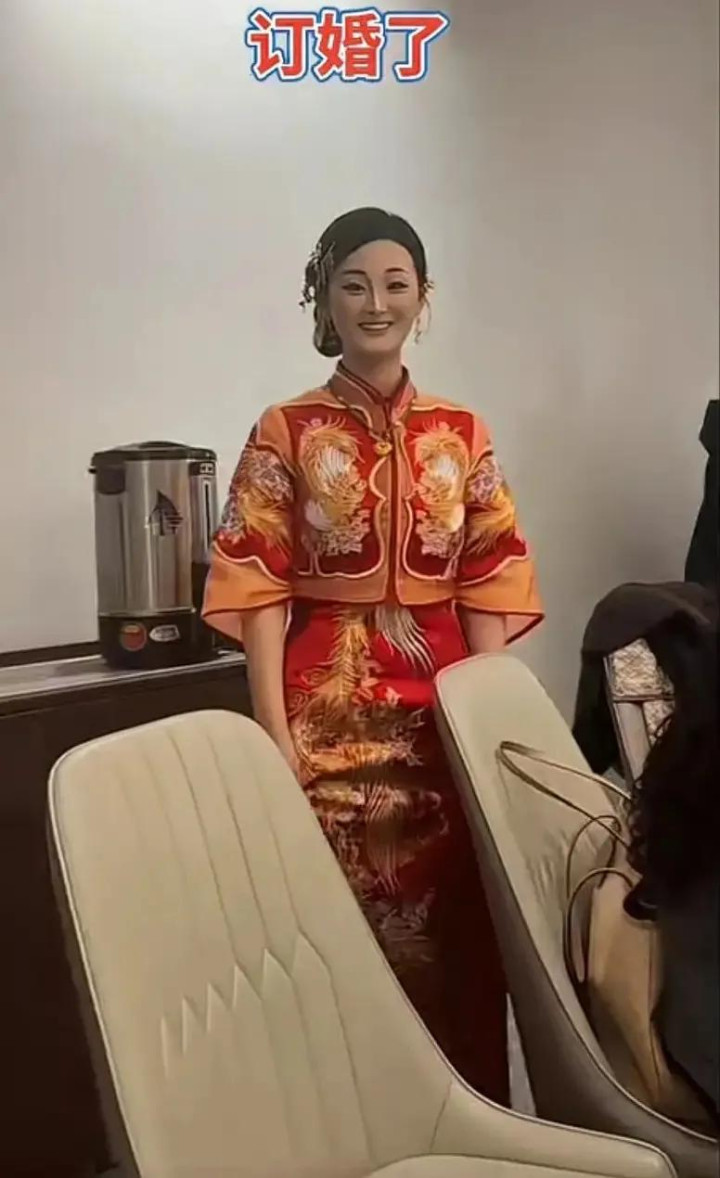 陈亚男身着登科秀禾服,笑靥如花,比往常景婚时但是要抖擞好多。