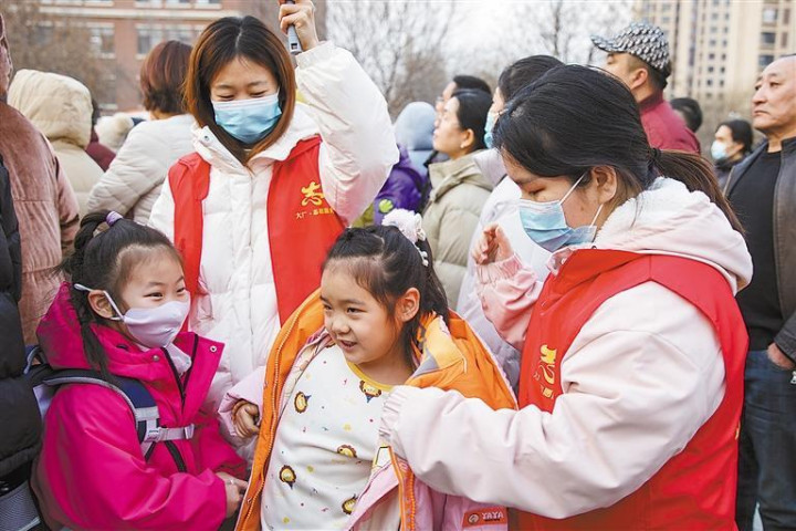 每世界午四点半,在紧邻花圃社区的田各庄小学门口,志愿者齐会准时出现,组织孩子们排队,教导他们安全有序前去社区通勤东说念主员子女托管管事站点。