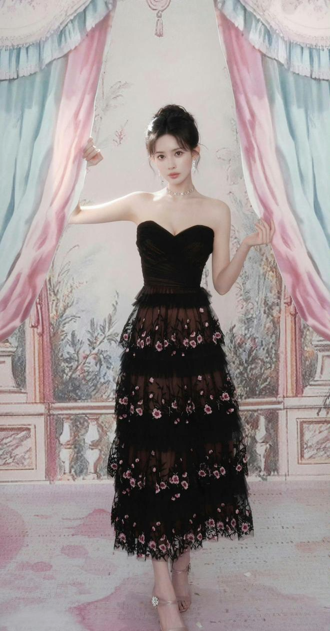 她选的这件玄色抹胸蛋糕纱裙是中枢亮点:抹胸磋议刚好瓦解肩颈线条,衬得锁骨和直角肩荒谬优厚,又不会显得轻浮;重重叠叠的网纱裙摆带着暧昧透视感,上头绣满粉白小碎花,顷刻间中庸了玄色的千里闷,甜而不腻,酷而不冷。