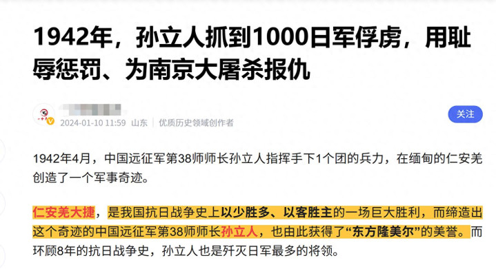 在短视频平台上,“孙立东说念主生坑一千日军俘虏”的故事广为流传,致使被渲染成“抗日名将的铁血复仇”。但史实真相,却与这个“爽文故事”有着很大差距。