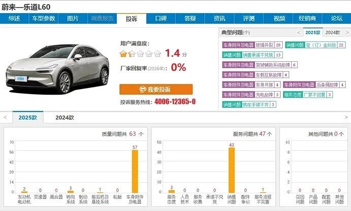 阛阓是狂暴的,数据不会说谎。乐谈L60曾在2024年12月创下月销过万的佳绩,但插足2025年后销量捏续低迷,到2026年2月已跌至1664辆,较峰值裁减一半以上 。这一断崖式下落的背后,恰是滂湃而来的口碑反噬。