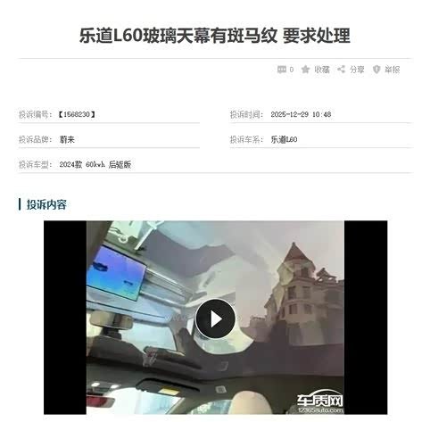 无数车主反应,乐谈L60的全景天幕在强光映照下,会出现大面积不限定的竖向明暗条纹,犹如斑马身上的斑纹。江苏车主万先生无奈地示意,我方于2025年8月购车,提车时因室内色泽不及未能发现,开车回家在阳光下才发现天幕遍布条纹,且无法通过外部清洁去除 。更有车主投诉称,跟着时间推移,这些“斑马纹”不仅莫得隐藏,反而越来越彰着 。
