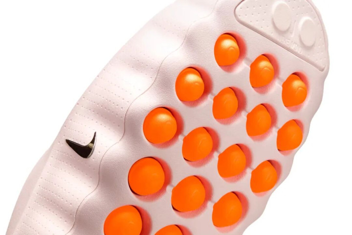 该鞋款最权贵的特征仍是是其实际性鞋床。外底选用了由22 个亮橙色节点组成的精确网格布局,旨在每一步中对足底产生狭窄刺激。这种结构化假想是一种科学启动的重要,意在增强躯壳与大地的连系感,为普通穿戴提供独有的感官体验。