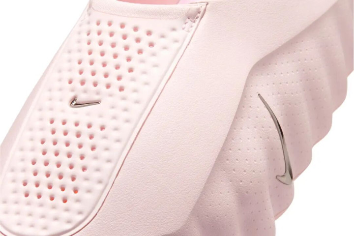 Mind 001 的中枢在于受神经科学启发的假想,将感官编削与松懈、极简的穆勒鞋好意思学相集会。一体成型的鞋面彻底包裹「珍珠粉」色调中,鞋头(Vamp)处设有政策性的排气孔,在保握透气性的同期,微辞表露里面细节。中足和侧边垂直支握柱位置点缀的袖珍金属银色 Swoosh Logo,为全体视觉增添了对比感。