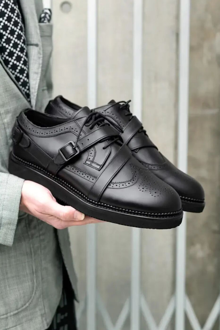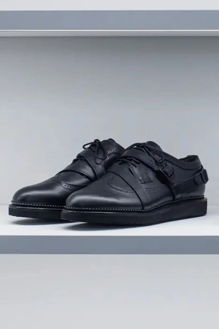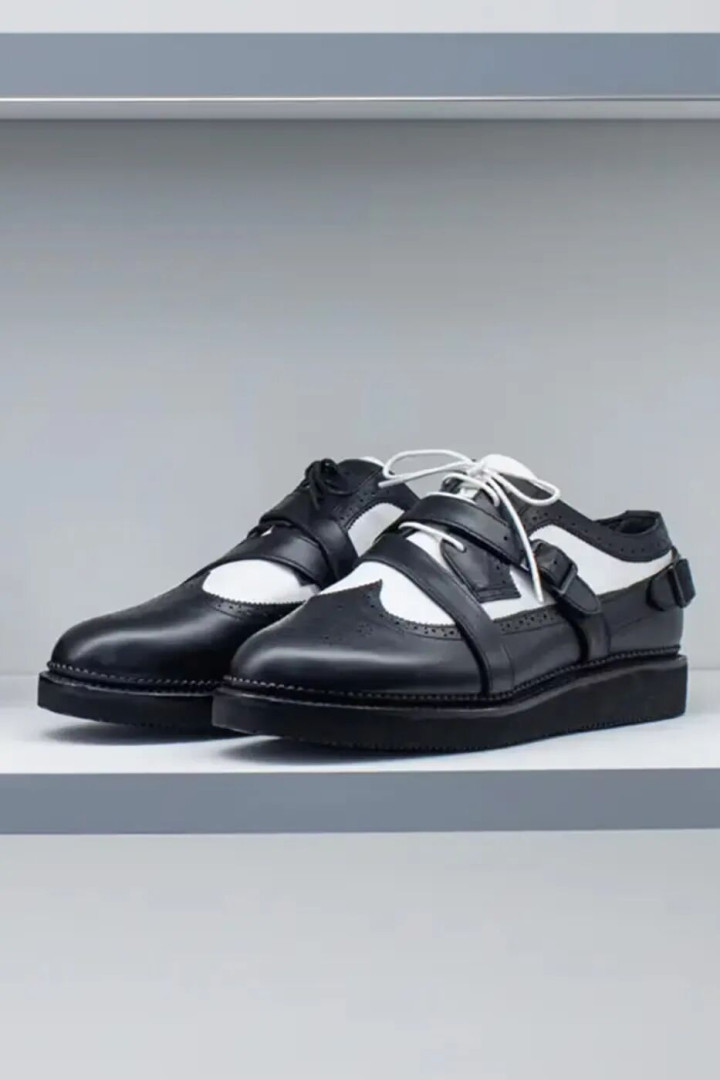 该假想以经典 Wingtip 的廓形为基础,融入了侧重于普通功能性的现代布局。这款联名鞋逃避了传统的系带系统,选用了可调治的 Belt strap,结束了快速穿脱功能和可调治的贴合度。