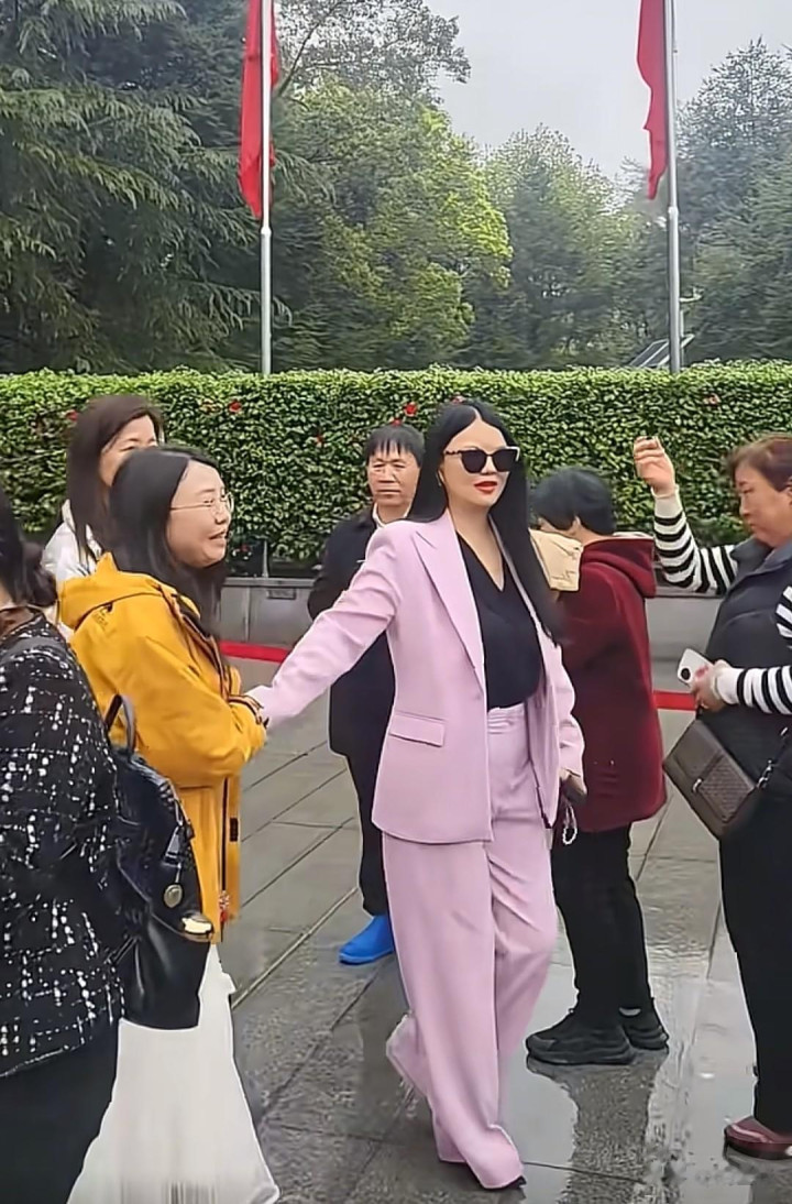 仅仅这身粉色西服套装,少了从前的大牌感,反倒被网友簸弄有几分“微商女强东谈主”的滋味,可这亦然她风云后初度以这么的现象出刻下公众眼前。