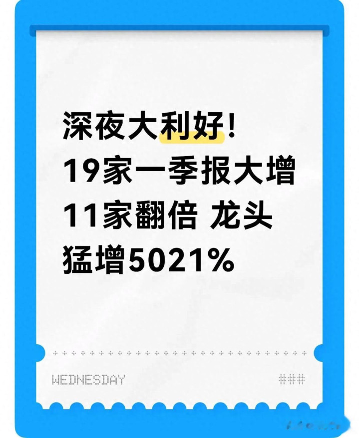 一、热门引题:深宵密集显露!19家一季报预增,11家翻倍龙头暴增50倍